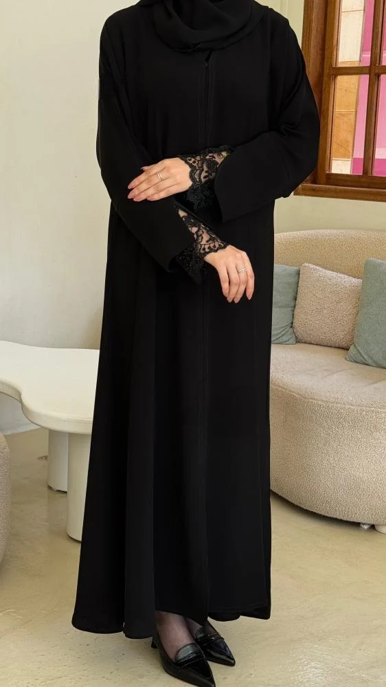 عبايات اكمام دانتيل بإطلالة أنثوية ناعمة تجمع بين الرقي والعملية ، من متجر مثيل ، لتستمتعي بإطلالة يومية راقية لا تخلو من الفخامة ، حيث تأتي هذه العباية مصممة من قماش الكريب الملكي المعروف بانسيابية وأناقة ملمسه ، كما تأتي بقصة ربع كلوش تمنحك حرية الحركة بلمسة عصرية فضلا عن الأكمام المفتوحة المزينة بتدخيله دانتيل فاخرة ، لتضفي على مظهرك لمسة ناعمة تتناسب مع مختلف الطلعات اليومية والمناسبات البسيطة.