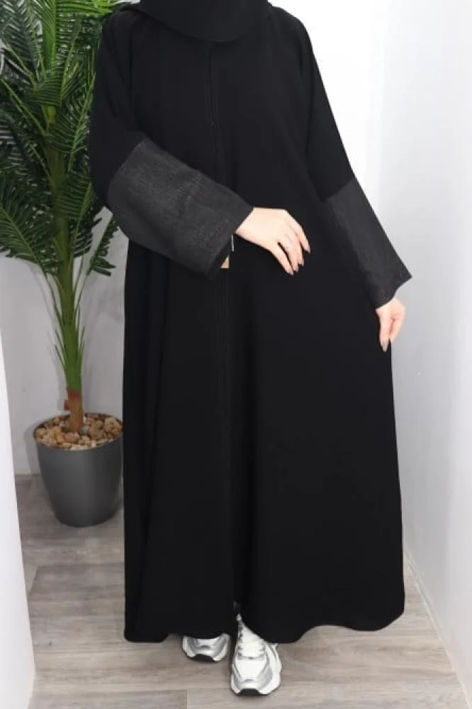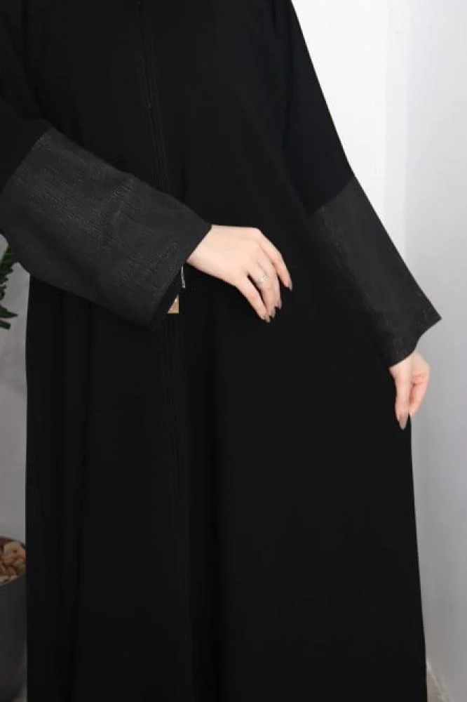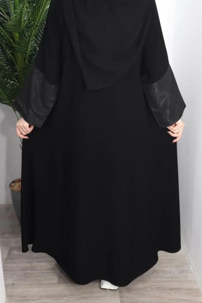 - لون أسود كلاسيكي يضفي فخامة وأناقة ويجعل العباية مناسبة لمختلف الأوقات والمناسبات.