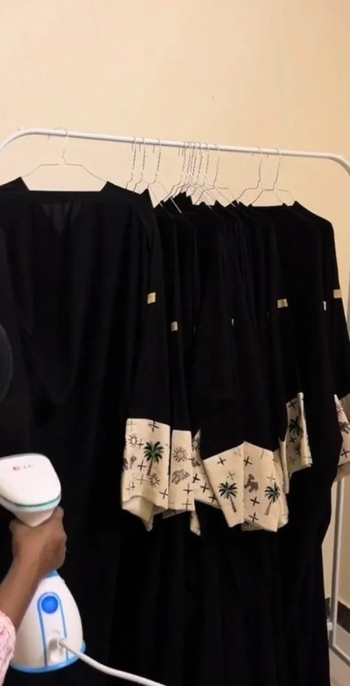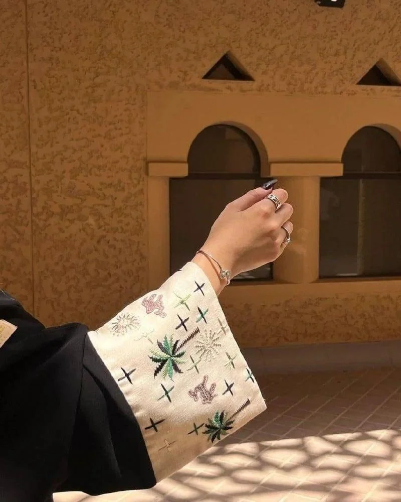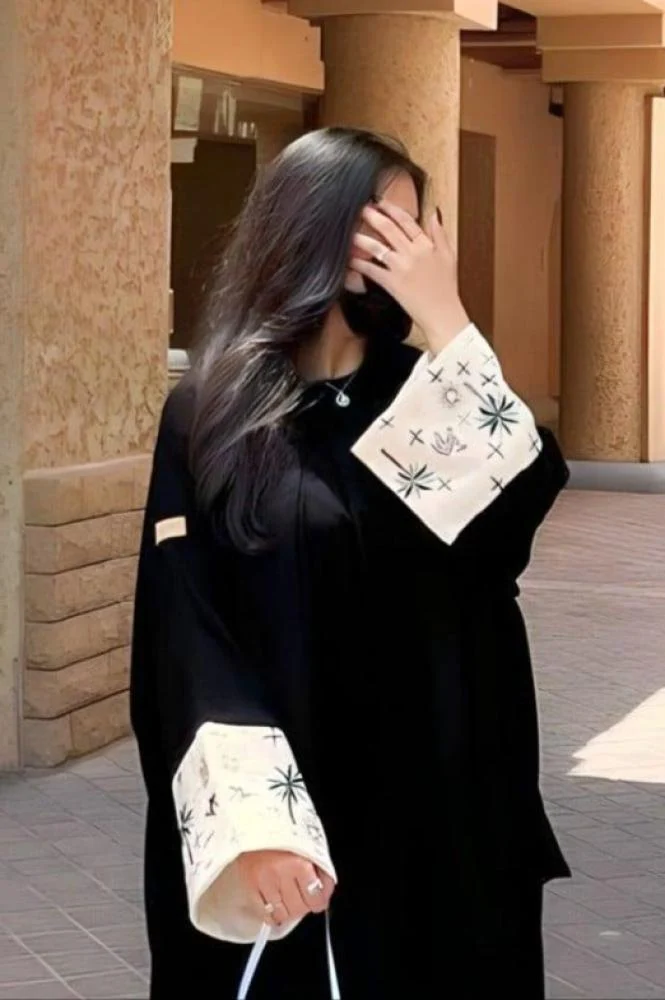 عباية أنيقة بلمسة فاخرة تجمع بين الأناقة والراحة في تصميم بسيط وعملي، مصنوعة من قماش فاخر بألوان داكنة وتفاصيل راقية يزينها تطريز ناعم على قماش أبيض أسفل الأكمام، خيار مثالي لإطلالة أنيقة ومريحة في الاستخدام اليومي.