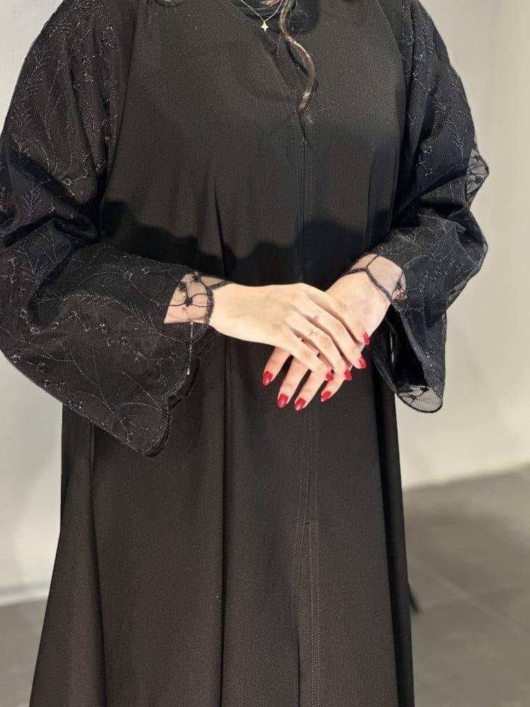 عباية دانتيل من الأكمام تتميز بالأناقة والراحة معًا مصنوعة من قماش الدانتيل الفاخر الذي يضفي لمسة من الفخامة والرقي مع تصميم أكمام واسعة وفضفاضة يمنحها مظهراً جذاباً وأنيقاً، هذه العباية خيار مثالي لمن تبحث عن إطلالة متجددة تجمع بين التميز والراحة في كل مناسبة.