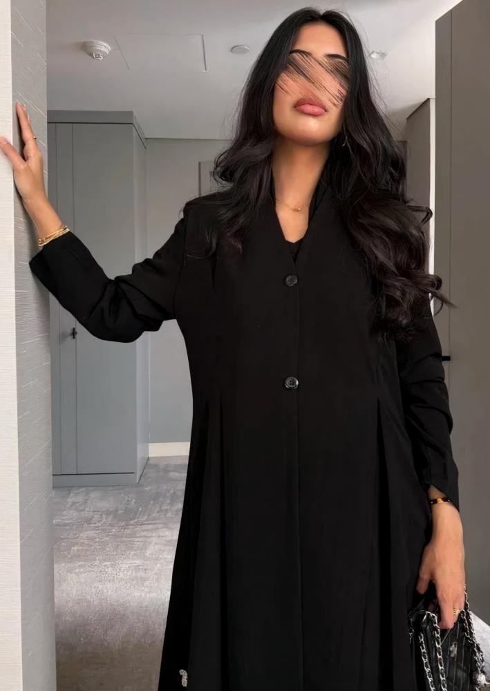 عباية سودا فخمة مصنوعة من قماش الكريب الفاخر، بتصميم أنيق يجمع بين البساطة والرقي ليمنحك إطلالة راقية تناسب جميع المناسبات. خامتها الناعمة وتفاصيلها الدقيقة تعكس فخامة الذوق وجودة التنفيذ. تسوقي الآن حصريًا من متجر مثيل وتمتعي بأناقة لا مثيل لها وجودة تليق بكِ.