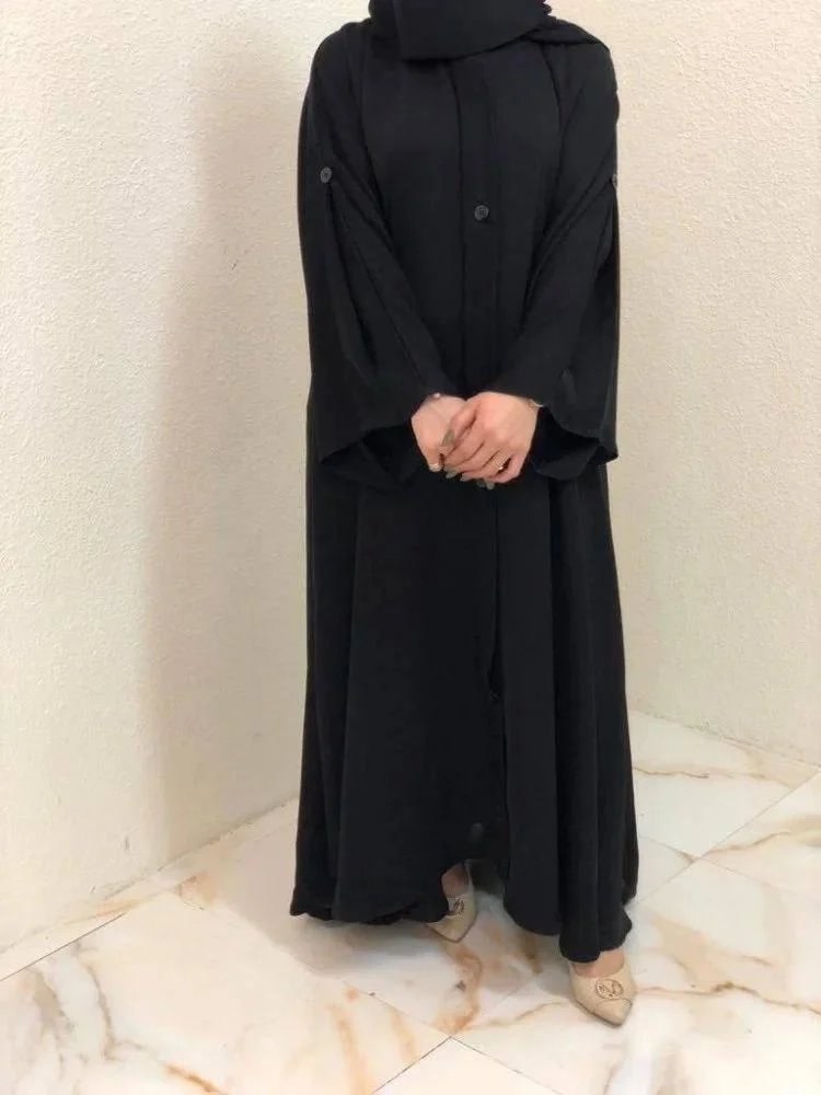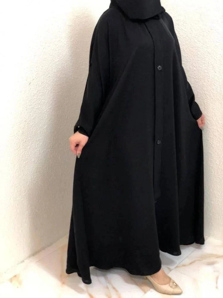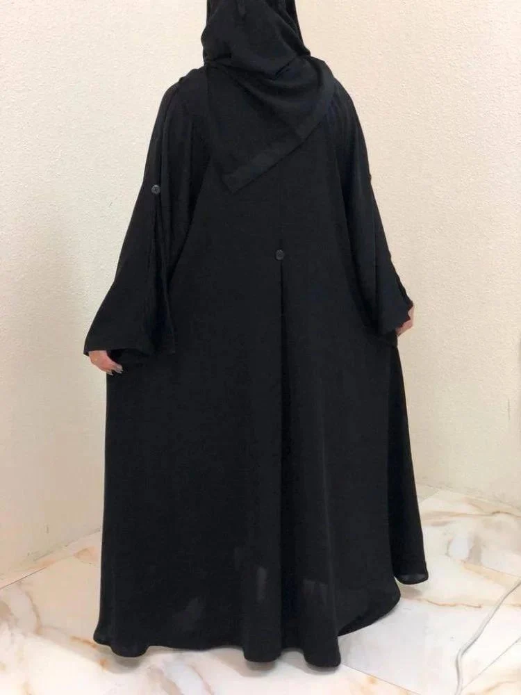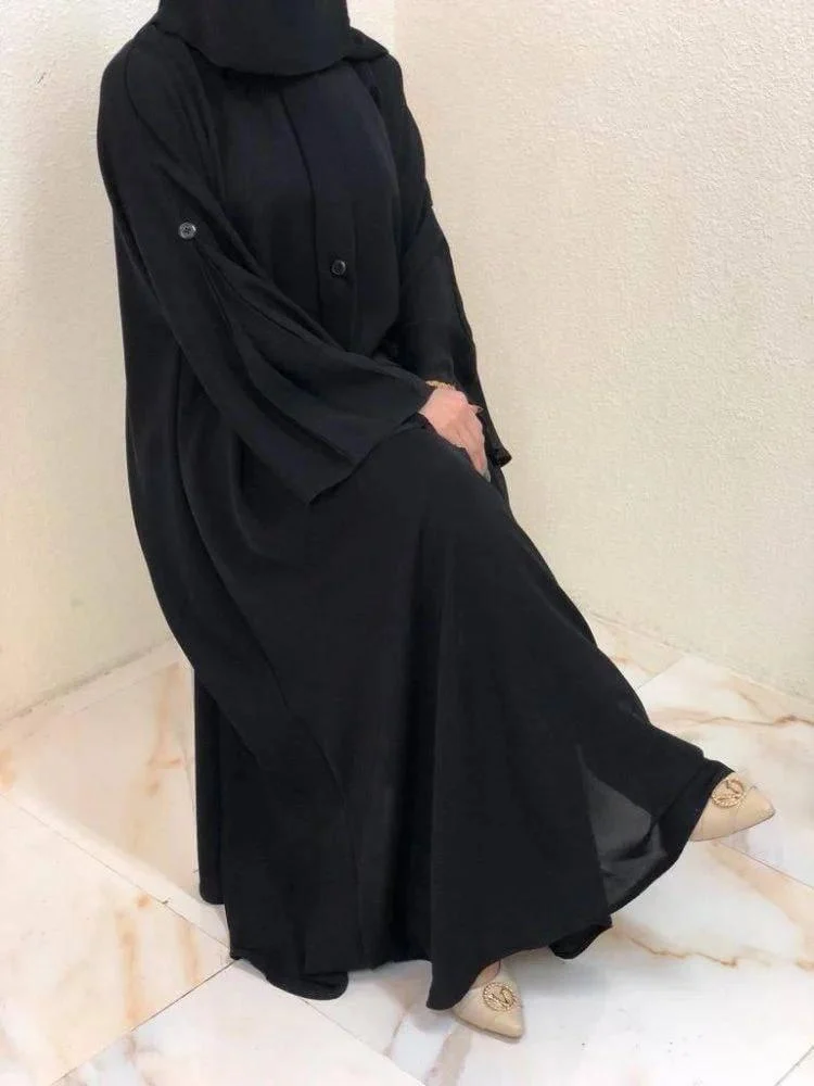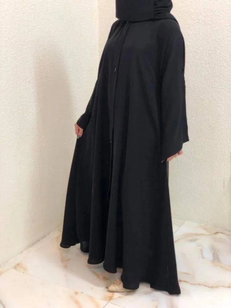 عباية كلوش سوداء بتصميم أنيق تليق بذوقك الرفيع وتمنحكِ حضورًا أنثويًا لافتًا، صممت هذه العباية بقصة كلوش واسعة تضيف لمظهرك لمسة من الانسيابية والراحة وتناسب مختلف الإطلالات اليومية والرسمية ، تم تزيين الأكمام بأزرار أنيقة تضيف بعدًا عصريًا للتصميم، لونها الأسود يمنحك حرية التنسيق مع الإكسسوارات والأحذية لإطلالة متكاملة ، اختاريها من متجر مثيل حيث نحرص على تقديم عبايات مصممة بعناية لتجمع بين الفخامة والعملية في كل تفصيلة.