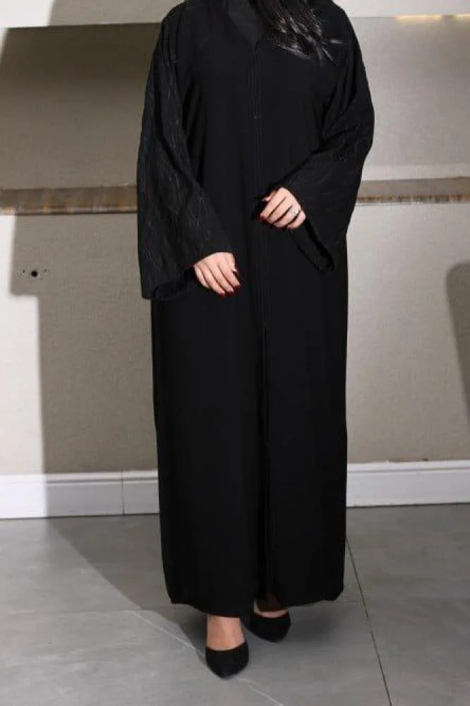 - أكمام واسعة بتطريز كامل تضيف فخامة ملفتة لتفاصيل العباية.