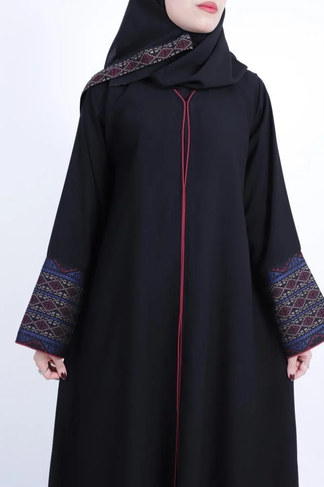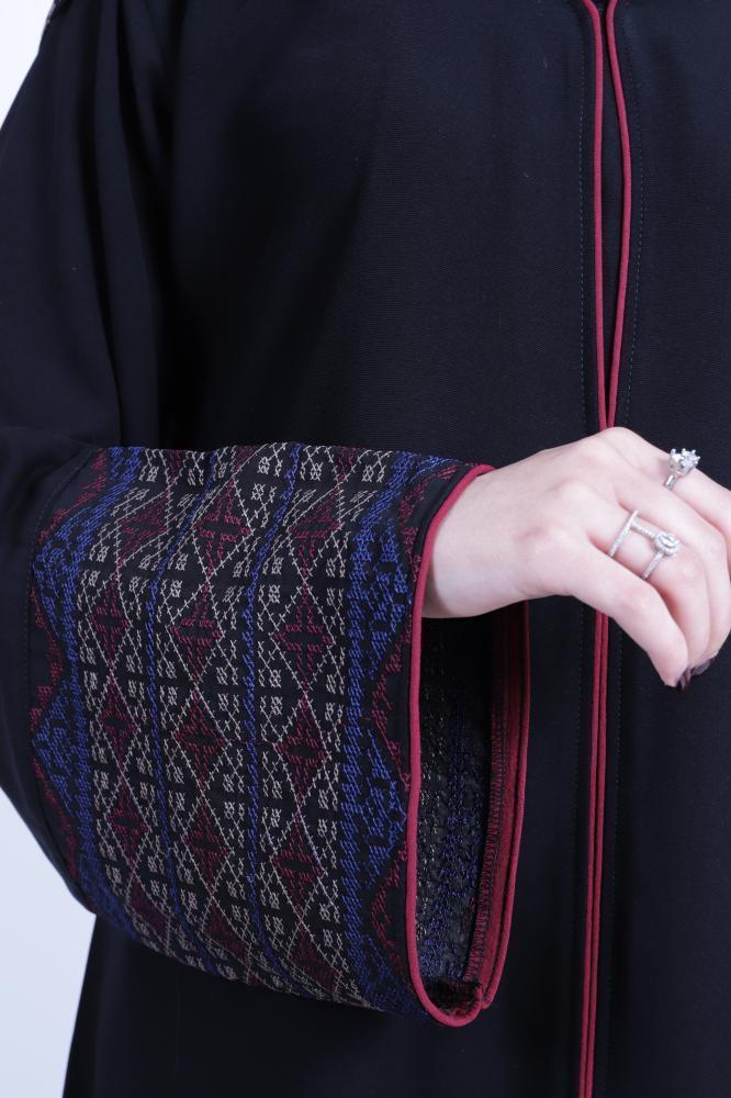 • قيطان نبيتي فاخر يضفي لمسة من التميز والعمق على التصميم ويبرز جمال العباية بأسلوب راقٍ.