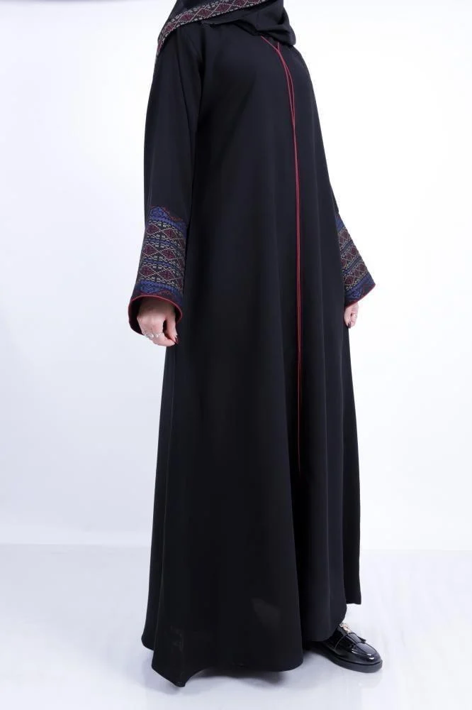 عباية ملونة تضيف حيوية وأناقة لإطلالتك بكل ثقة وجمال من متجر مثيل ، عباية نص كلوش بتصميم عصري وألوان متناسقة تنبض بالحياة مصنوعة من قماش كريب الفاخر الذي يمنحك راحة وانسيابية طوال اليوم،الأكمام مزينة بتدخيله من التطريزات الكشميري بألوان زاهية ومتناسقة مما يضيف لمسة من الفخامة والتميز تُكمل العباية تفاصيل القيطان باللون النبيتي الذي يمنح التصميم عمقًا وأناقة إضافية لتكون خيارك الأمثل لإطلالة مشرقة ومختلفة.
