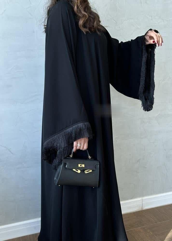 عباية قماش كريب واقف بتصميم عصري وأنيق تتميز بتفاصيل جاكار راقية تضفي لمسة فخامة وجمال مميز، مصنوعة من أجود أنواع الأقمشة التي تجمع بين الراحة والأناقة لتناسب إطلالاتك في جميع المناسبات الرسمية واليومية.